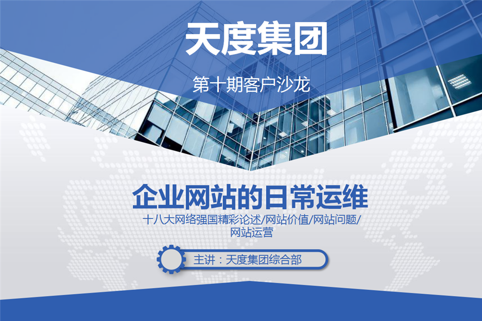 企業(yè)網(wǎng)站建設(shè)是企業(yè)文化的組成部分,對(duì)企業(yè)形象的建立和企業(yè)知名度的提高起著至關(guān)重要的作用,是企業(yè)實(shí)現(xiàn)”互聯(lián)網(wǎng)+“產(chǎn)業(yè)轉(zhuǎn)型的重要手段。建一個(gè)網(wǎng)站,對(duì)于大多數(shù)人并不陌生。尤其是已經(jīng)擁有自己網(wǎng)站的企業(yè)和機(jī)構(gòu)。但是提到網(wǎng)站運(yùn)營(yíng)可能特別多人不理解,對(duì)網(wǎng)站運(yùn)營(yíng)的重要性也不明確,通常被忽視。故此天度集團(tuán)專門針對(duì)“企業(yè)站的日常運(yùn)維”展開了第十期客戶沙龍。