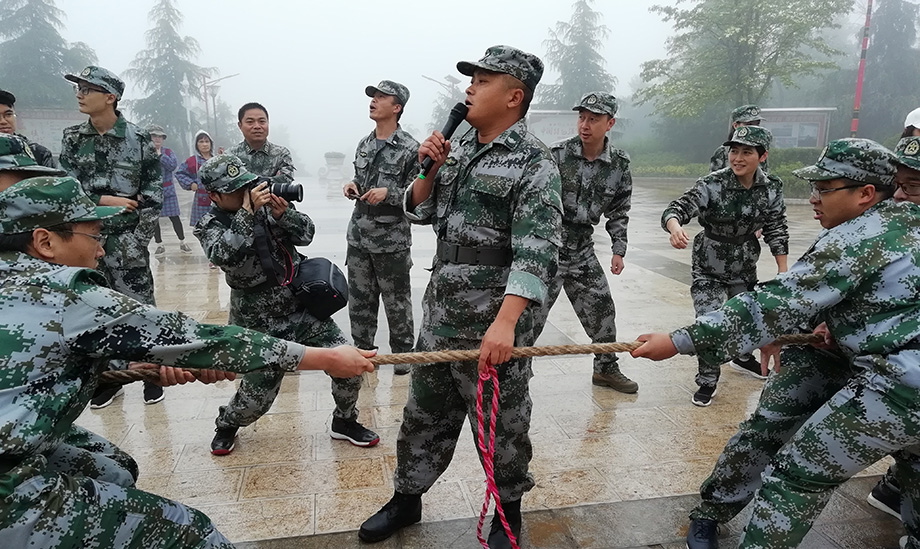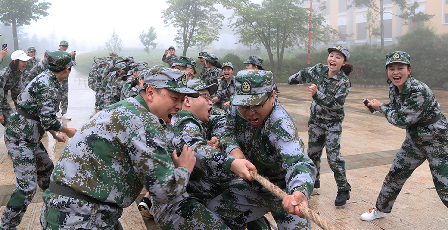 相比較剛開始的魔鬼訓(xùn)練,之后就輕松了一些,一來是大家已經(jīng)適應(yīng)這種節(jié)奏了,二來教官也在日常訓(xùn)練過程中加入了一些趣味活動。例如以公司為單位的拔河比賽,雖然場地濕滑,狀況百出,但是大家誰都不肯服輸,賽場上的氣勢如虹破竹。