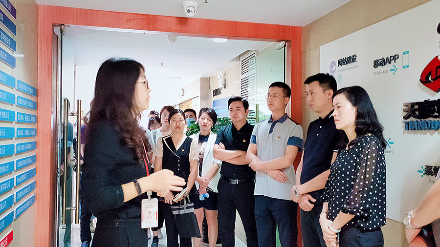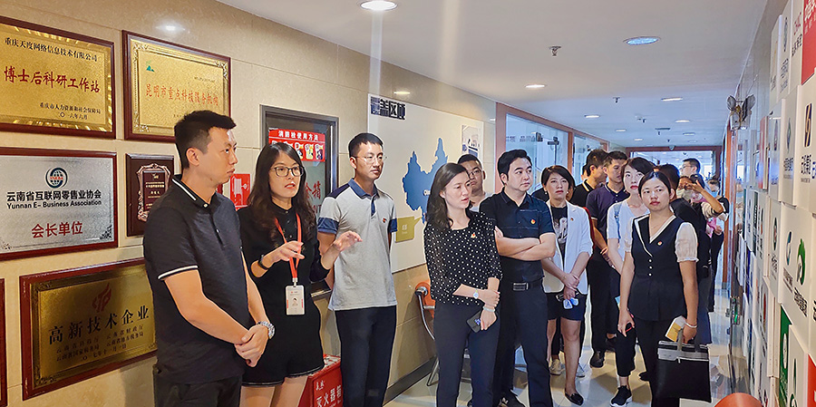 2020年7月7日下午,共青團(tuán)臨滄市委書記丁玲一行15人在共青團(tuán)昆明市委副書記林勤同志及共青團(tuán)西山區(qū)委書記吳陽青同志的陪同下來到天度集團(tuán),圍繞青年電商創(chuàng)業(yè)、直播帶貨、電商扶貧等內(nèi)容進(jìn)行考察交流