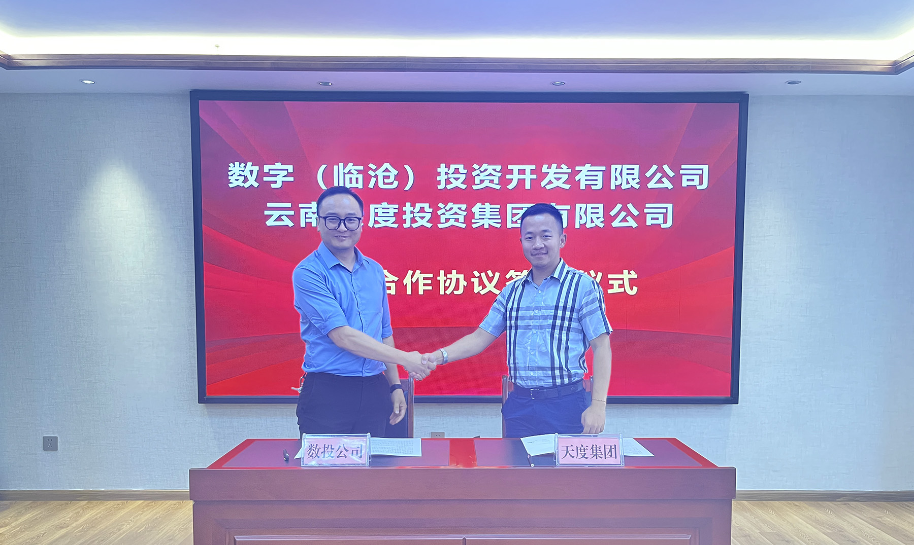 數(shù)字(臨滄)投資開發(fā)有限公司總經(jīng)理王應(yīng)東、云南天度投資集團(tuán)有限公司副總經(jīng)理施錦明簽訂戰(zhàn)略合作協(xié)議