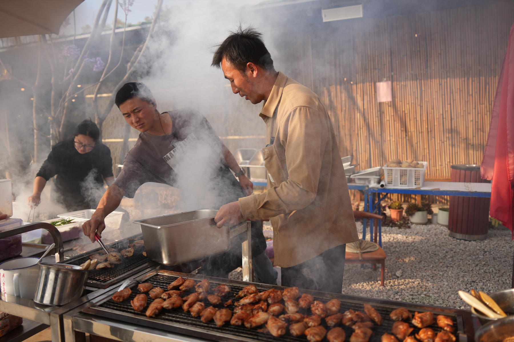 儀式過(guò)后,露天燒烤晚宴火熱開(kāi)啟!美食美酒,暢敘情誼,大家盡情享受這場(chǎng)味覺(jué)盛宴。樂(lè)隊(duì)也從暖場(chǎng)伴奏轉(zhuǎn)為激情L(zhǎng)ive秀,《海闊天空》《追夢(mèng)赤子心》等經(jīng)典旋律引發(fā)全場(chǎng)共鳴,點(diǎn)歌環(huán)節(jié)更讓現(xiàn)場(chǎng)成為歡樂(lè)的海洋。